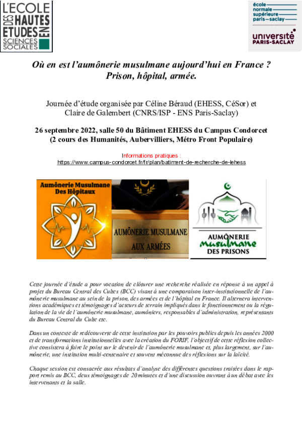 Journée d'études - Où en est l’aumônerie musulmane aujourd’hui en France ? Prison, hôpital, armée.