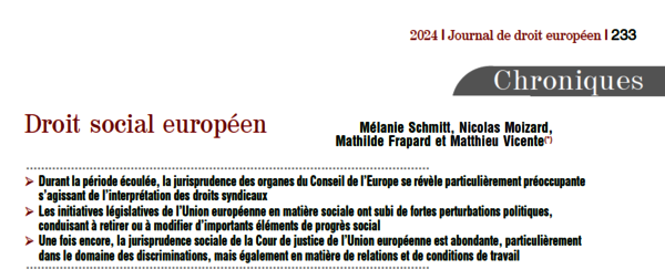 "Droit social européen", Chronique publiée au Journal de droit européen